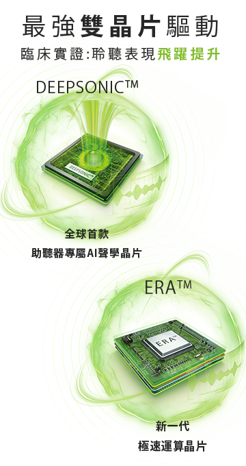 採用最先進深度神經網絡 (DNN) 演算法,每秒運算77億次,人工智能實時思考、創造最完美符合現場環境的音效。經過實測,實力遠超其他品牌助聽器53倍!