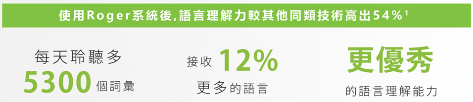 Roger是針對噪音、遠距離而開發的無線麥克風科技,運行於2.4GHz頻段(類似藍牙),聚焦接收語音並無線傳輸到助聽器上,從而帶來顯著的信噪比增益,達至全新層次的語言理解力。